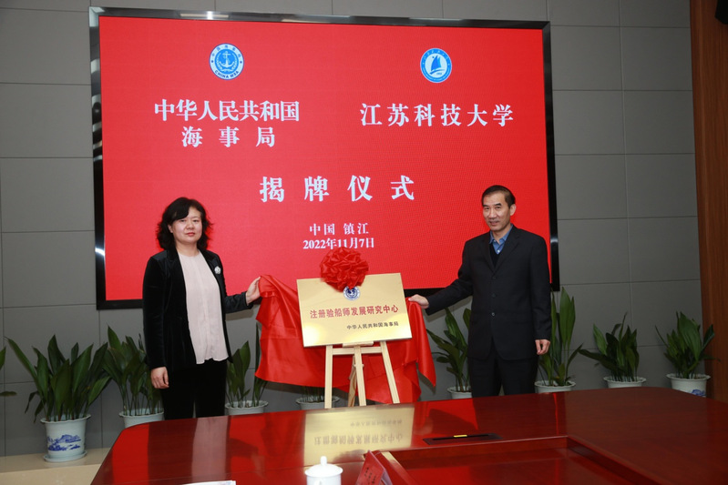11月7日,中华人民共和国海事局与江苏科技大学合作交流会在长山校区举行。校长周南平出席会议,交通运输部海事局副处长、一级调研员邓少彪、江苏科技大学党委常委、副校长嵇春艳共同为“注册验船师发展研究中心”揭牌。